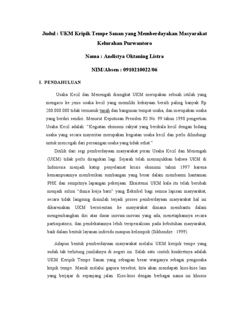 DOC) Analisi usaha kripik tempe | putra dwi - Academia.edu