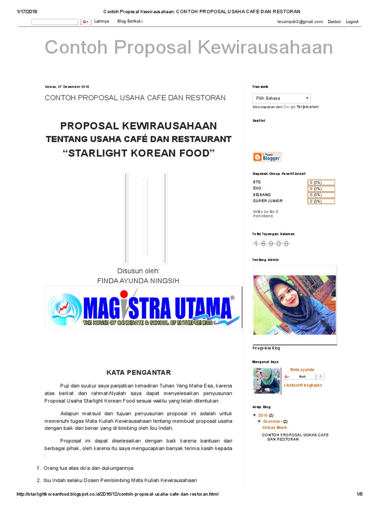 Contoh Proposal Kewirausahaan Restoran