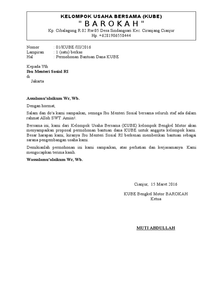 DOC) Contoh Proposal Permohonan Bantuan Dana dari Kementerian Sos | Daud Rumbewas - Academia.edu