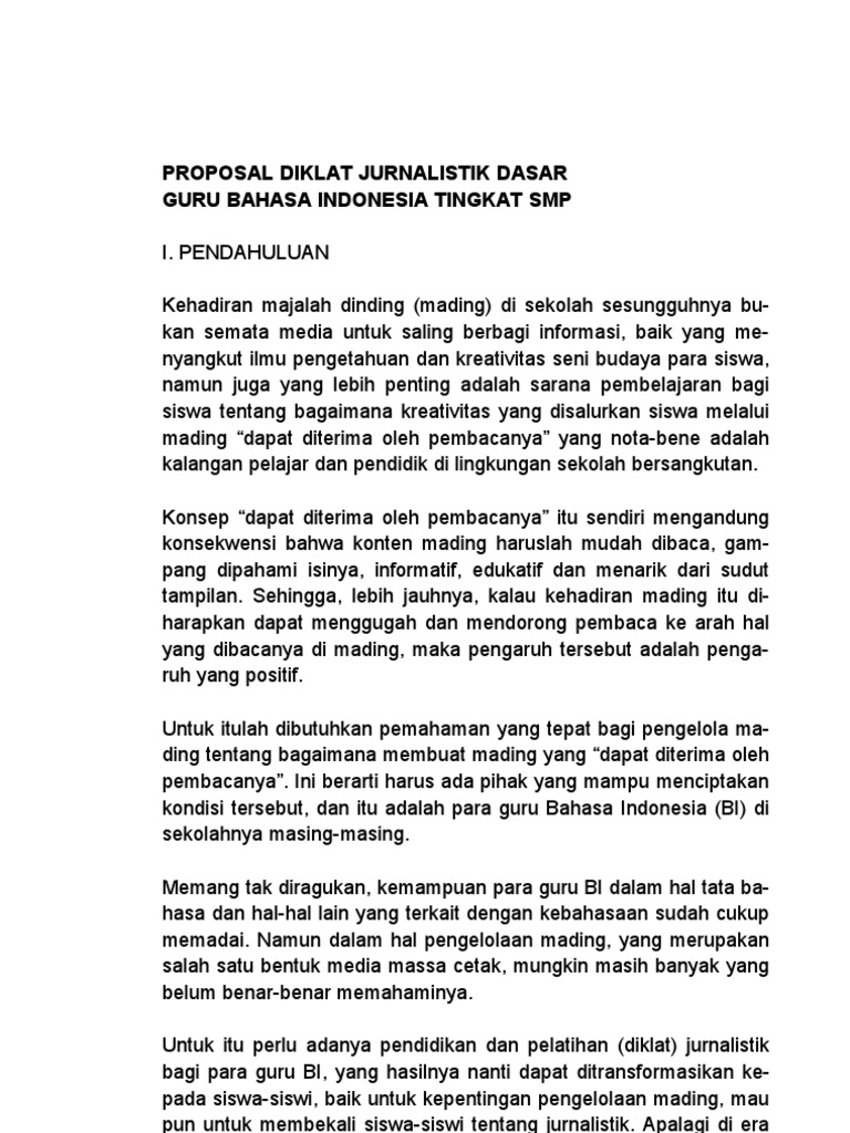 DOC) Contoh Proposal Pelatihan Jurnalistik | Bahrun Ali Murtopo - Academia.edu