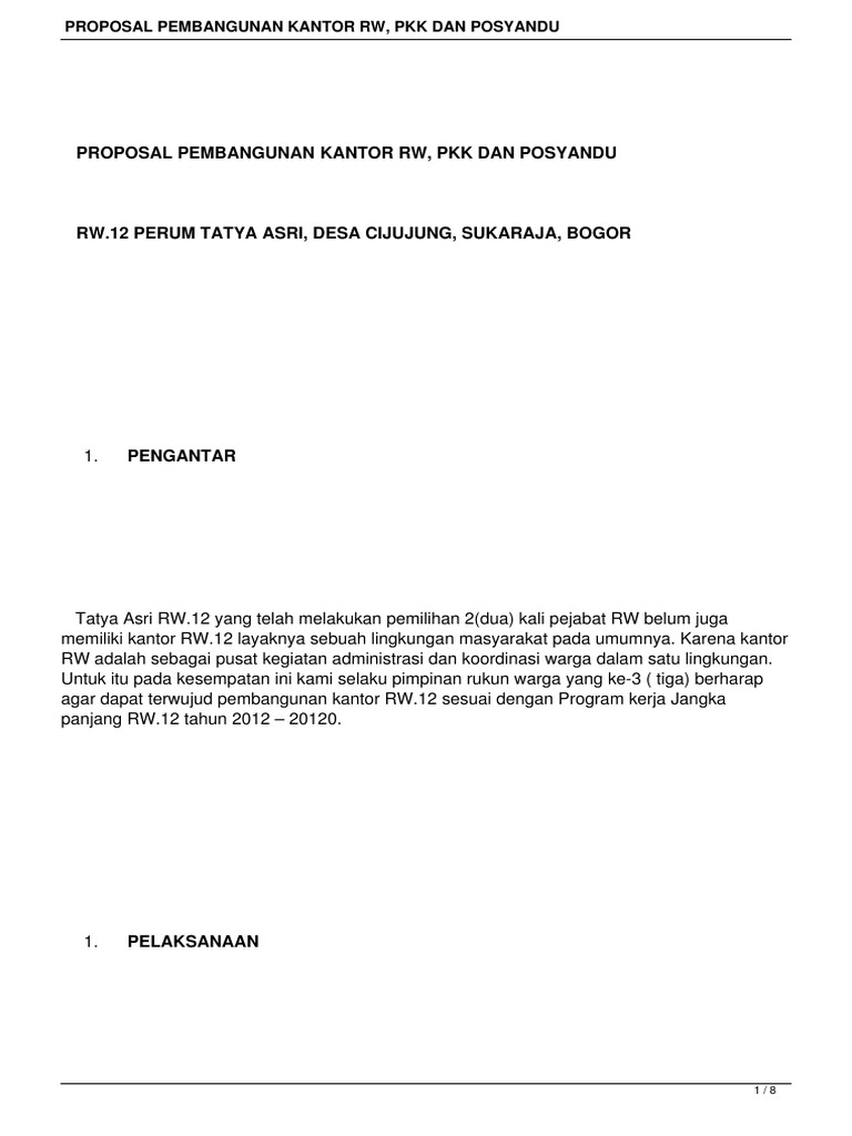 Proposal Pembangunan Kantor Rw Pkk Dan Posyandu