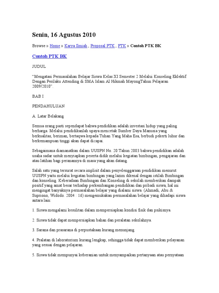 Contoh Proposal Penelitian Tindakan Bimbingan Konseling 2010 - Temukan Contoh