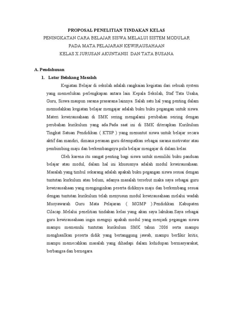 Proposal Penelitian Tindakan Kelas