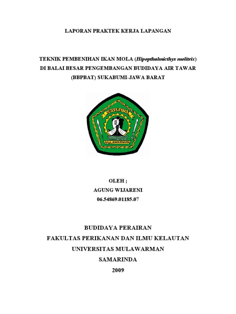 PRAKTEK KERJA LAPANG PROGRAM STUDI S-1 BUDIDAYA PERAIRAN - PDF Free Download