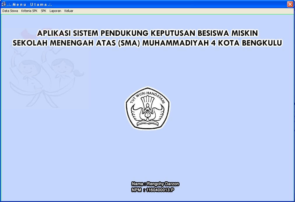 SISTEM PENDUKUNG KEPUTUSAN PENENTUAN SISWA PENERIMA BEASISWA DENGAN METODE SIMPLE ADDITIVE WEIGHTING BERBASIS JAVA DESKTOP APPLI