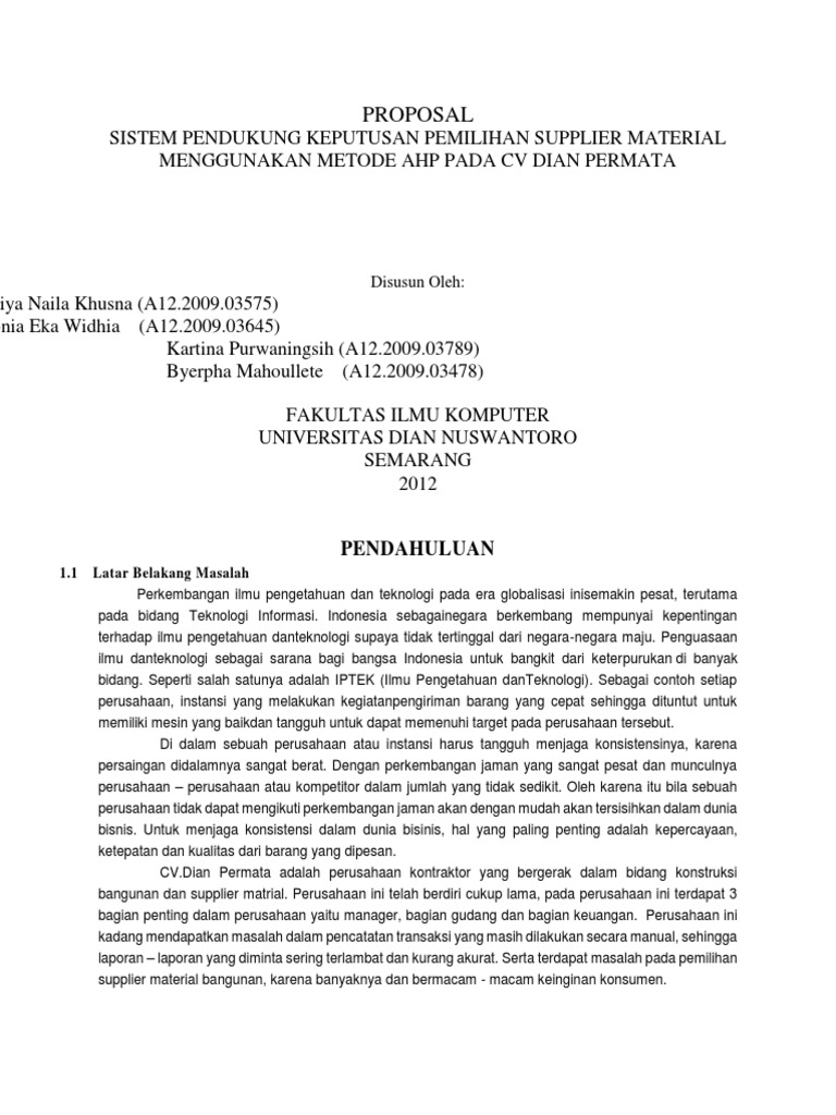 PDF) Contoh Proposal Skripsi Menggunakan Sistem Pendudkung Keputusan | Zoelfi Ahmad - Academia.edu