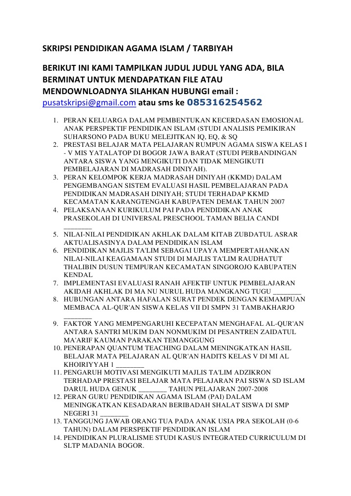 540 Ide Judul Skripsi PAI Pendidikan Agama Islam Terbaru Lengkap ( Part 13 ) - MAKALAH-PEDIA