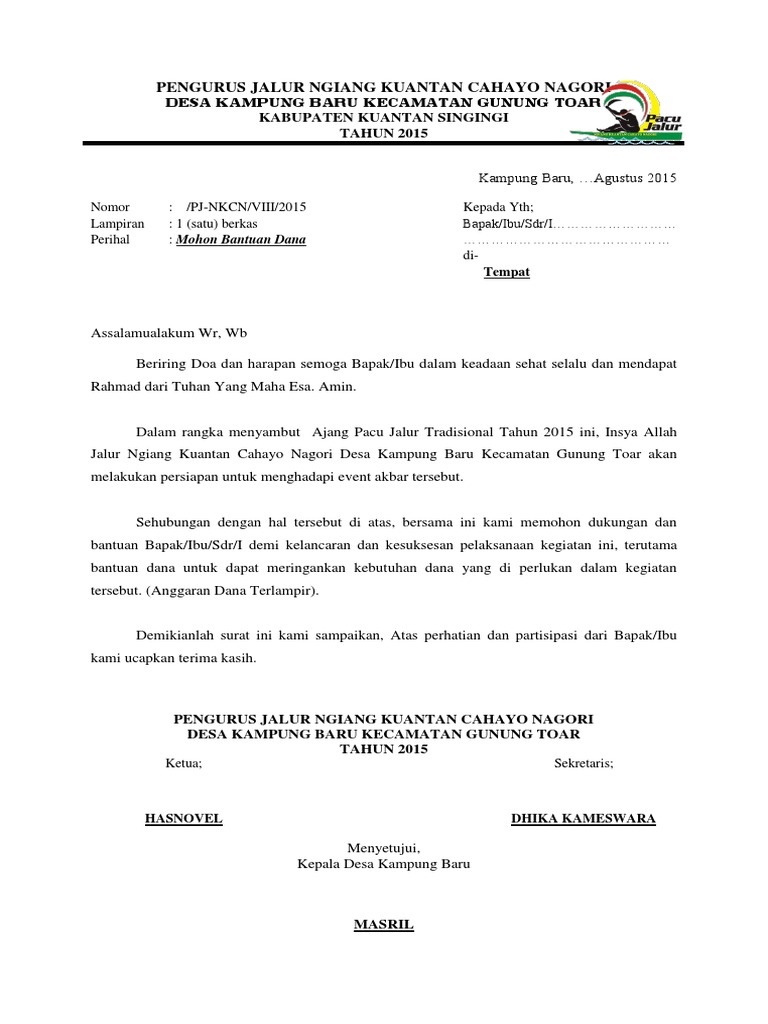 contoh proposal kegiatan pacu jalur