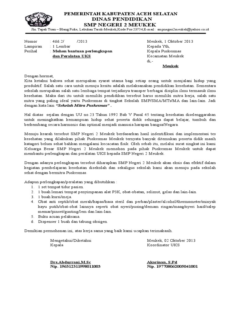Contoh Proposal Pengajuan Alat Kesehatan Covid-19 dan Usaha Kesehatan Sekolah (UKS) - Cariduit-dot