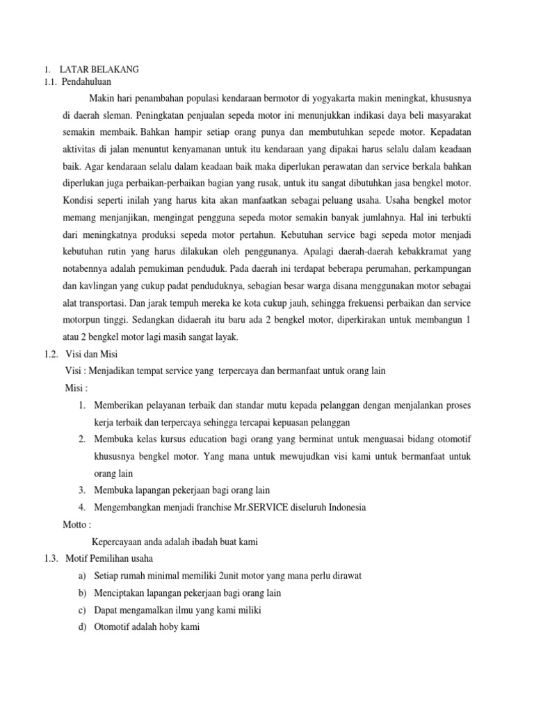 DOC) CONTOH PROPOSAL USAHA BENGKEL MOTOR.docx | safa nuriasyah - Academia.edu