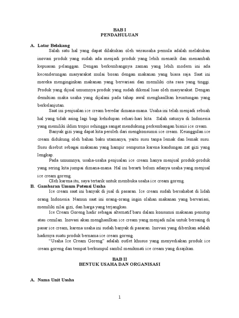 DOC) ES KRIM GORENG plan bisnis.doc | Hajrul Onet - Academia.edu