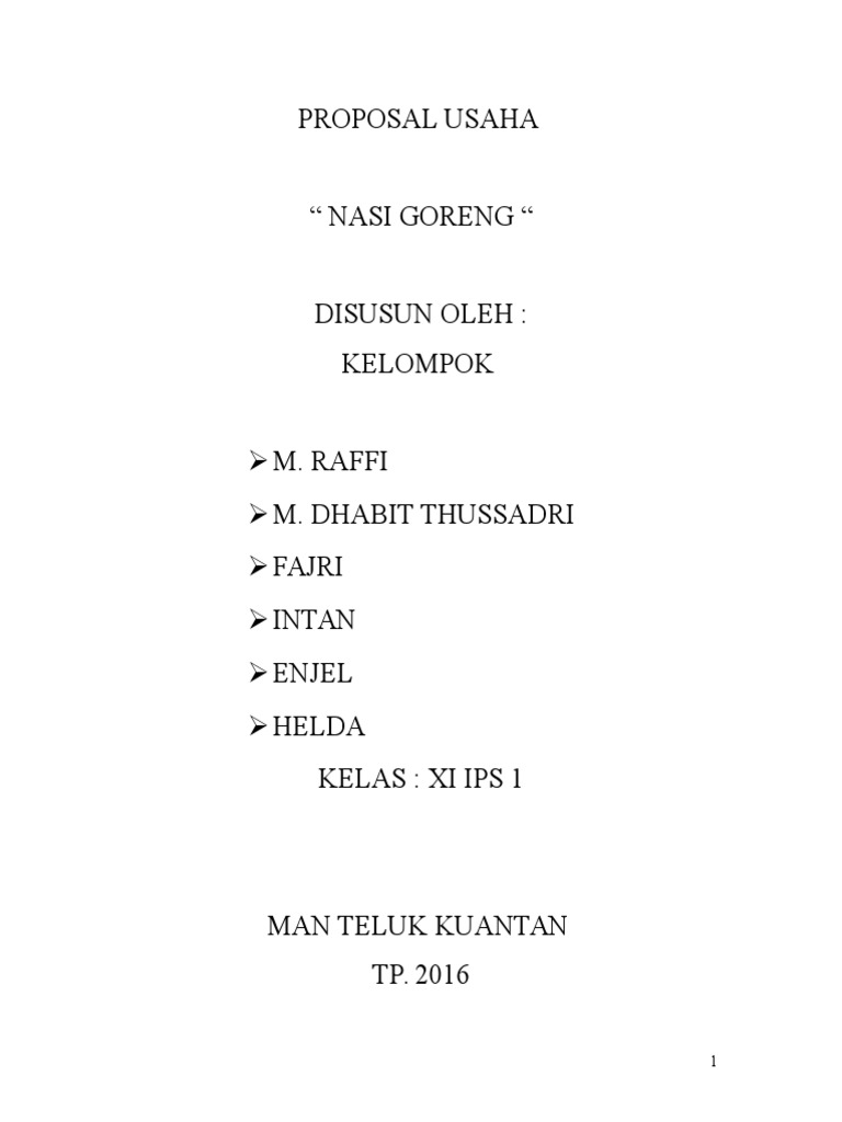 Contoh Proposal Usaha Nasi Goreng Pdf - Surat Rasmi Ra