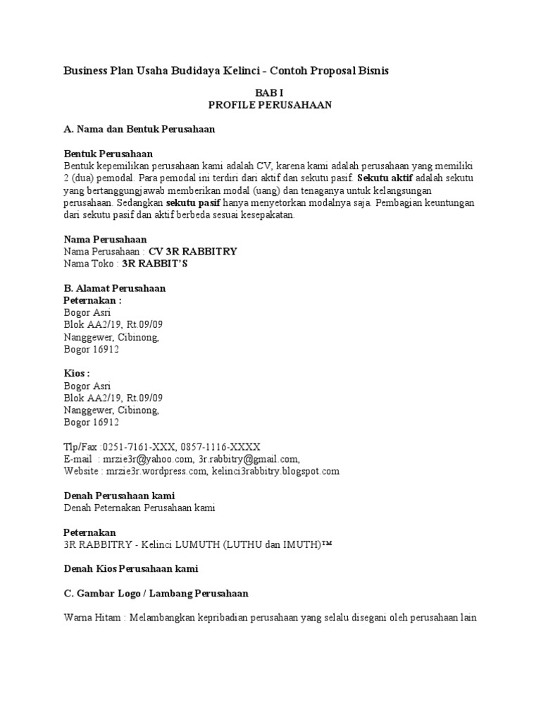 Business Plan Usaha Budidaya Kelinci