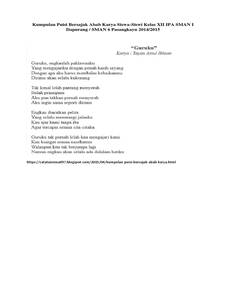ISMAIL BATARA: Kumpulan Puisi Bersajak Abab Karya Siswa-Siswi Kelas XII IPA SMAN I Dapurang / SMAN 6 Pasangkayu 2014/2015