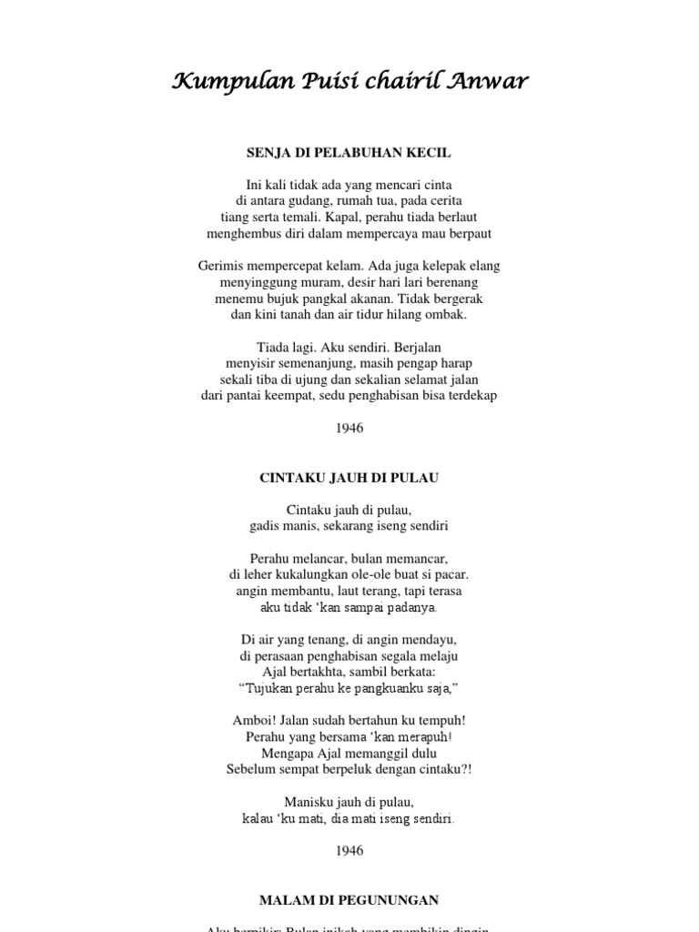 PDF) Kumpulan Puisi-puisi Chairil Anwar AKU | Riki Ersanda - Academia.edu