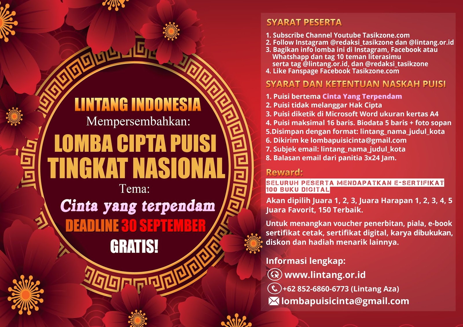 LOMBA PUISI NASIONAL] LOMBA CIPTA PUISI TINGKAT NASIONAL LINTANG INDONESIA TAHUN 2019 DEADLINE 30 SEPTEMBER - LINTANG INDONESIA