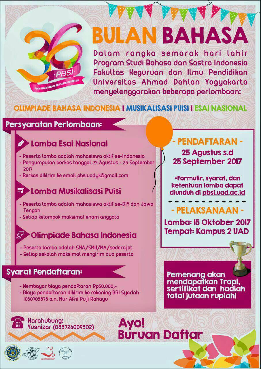 Pendidikan Bahasa dan Sastra Indonesia – Lomba Bulan Bahasa 2017 PBSI UAD