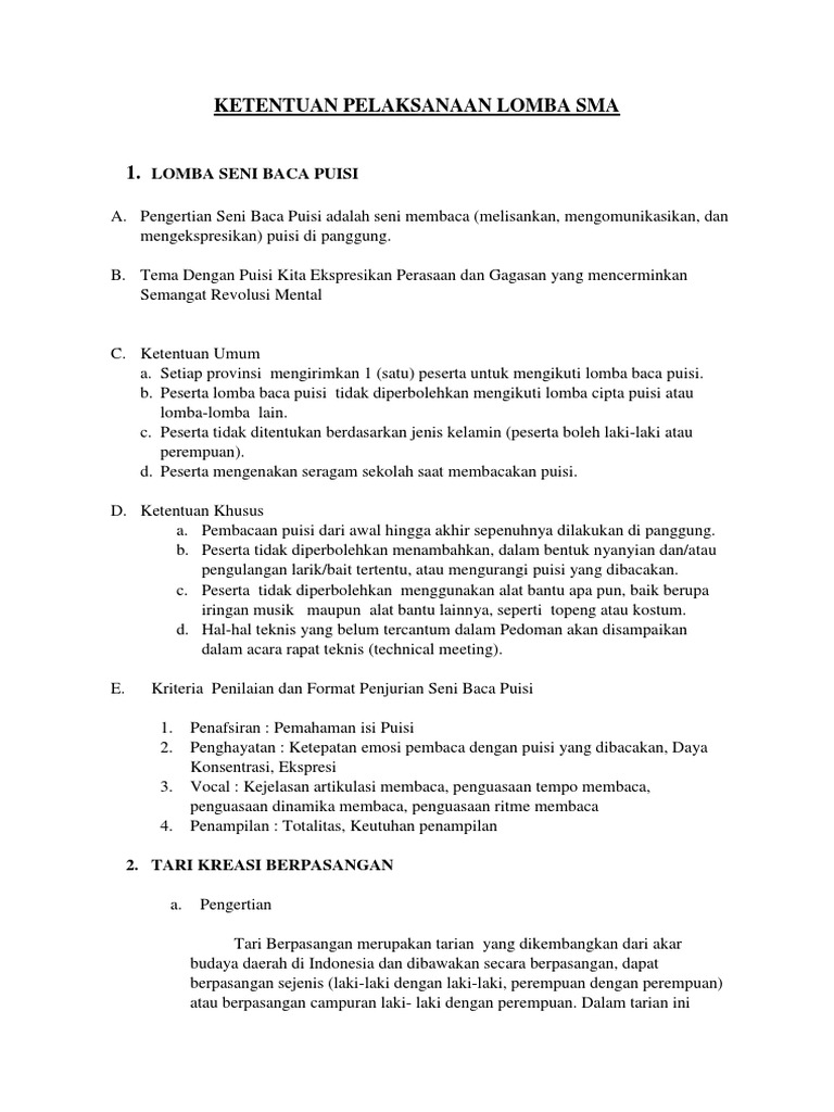 Contoh Format Penilaian Lomba Baca Puisi - Ada Lomba
