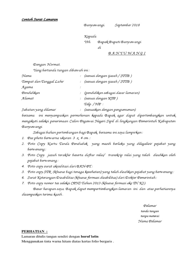 PDF) Contoh surat lamaran CPNS Kab. PALI | hariee as - Academia.edu