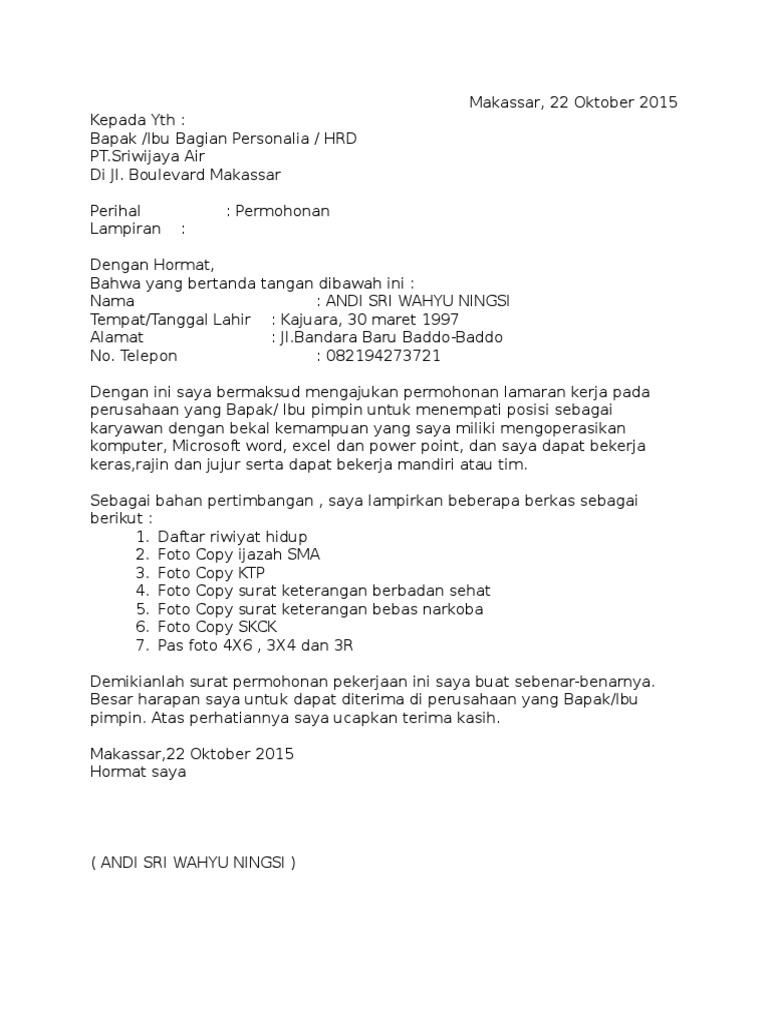 Contoh Surat Lamaran Kerja Di Bandara Angkasa Pura - Bagikan Contoh
