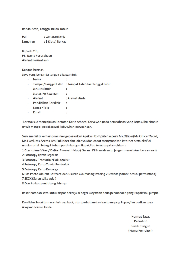 Contoh Surat Lamaran Kerja Terlengkap