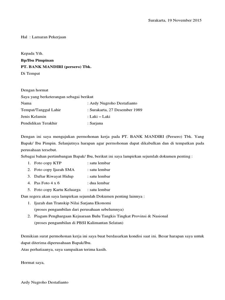 DOC) SURAT LAMARAN KERJA | elisa chandra - Academia.edu