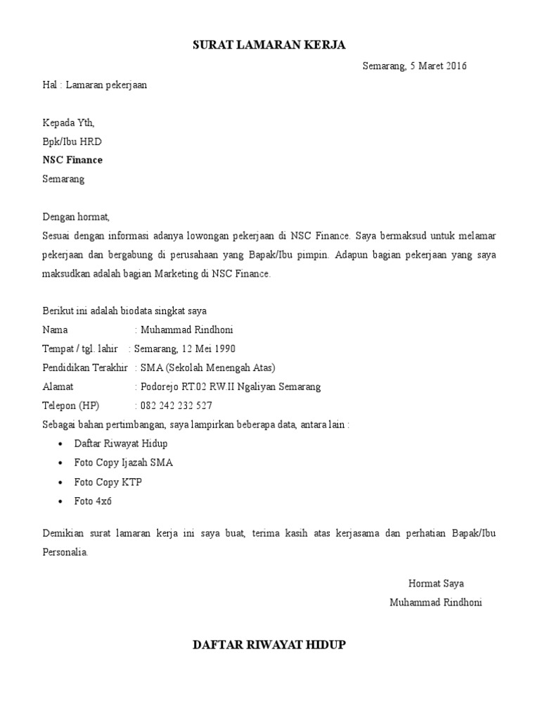 Contoh surat lamaran kerja | CV Terbaru | Cekkembali