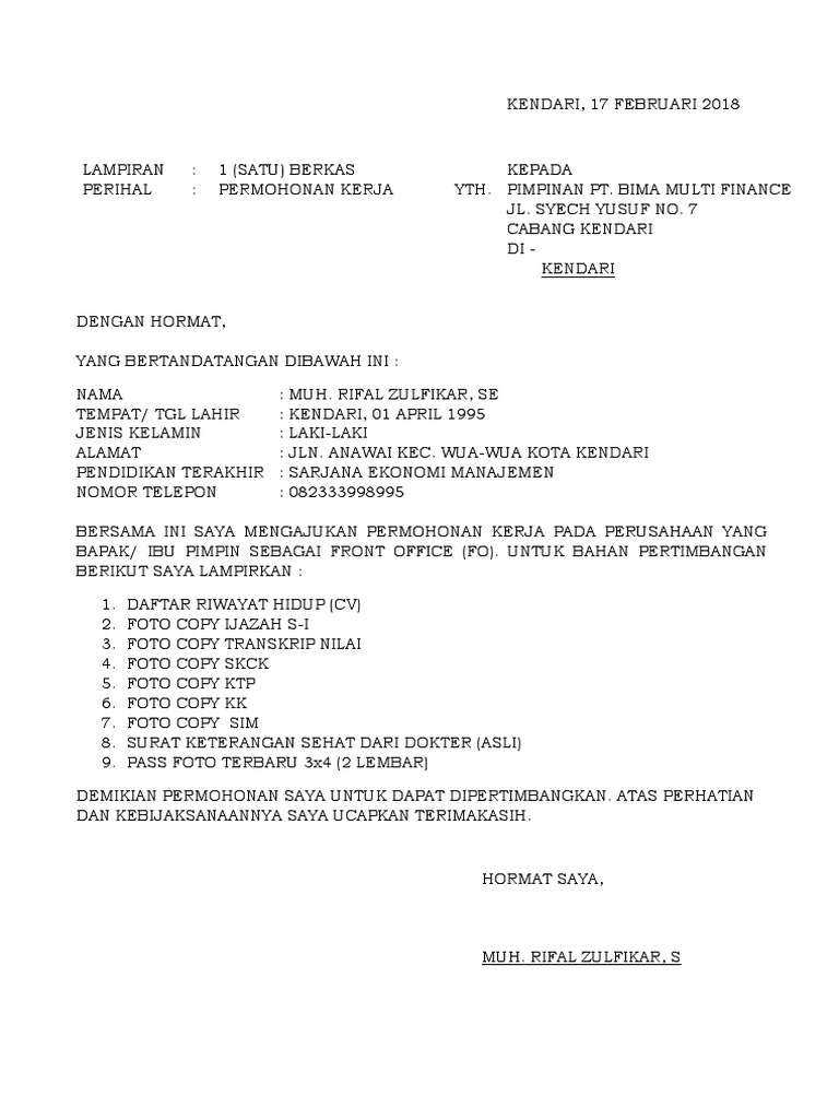 Contoh Surat Lamaran Kerja Fif Finance - Kumpulan Contoh Gambar