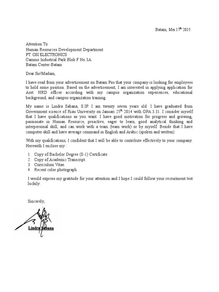 Job Application Letter OSI Batam | Behavior Modification | Cognition
