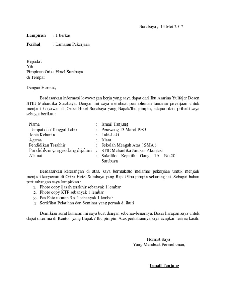 DOC) contoh surat lamaran pekerjaan | Ahmad Zuhudy - Academia.edu