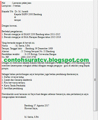 Inilah Contoh Surat Lamaran Kerja Guru SMA yang Bagus - Contoh Surat & Curriculum Vitae