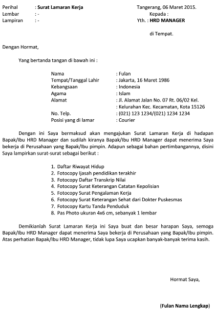 12++ Contoh Surat Lamaran Kurir Jt - Kumpulan Contoh Gambar