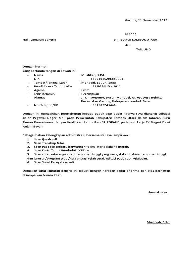 PDF) Contoh surat lamaran CPNS Kab. PALI | hariee as - Academia.edu