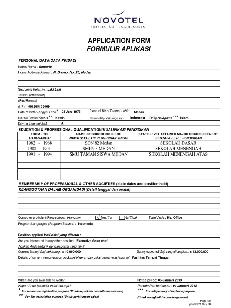 Contoh Cv Untuk Melamar Kerja Di Restoran - BEST RESUME EXAMPLES
