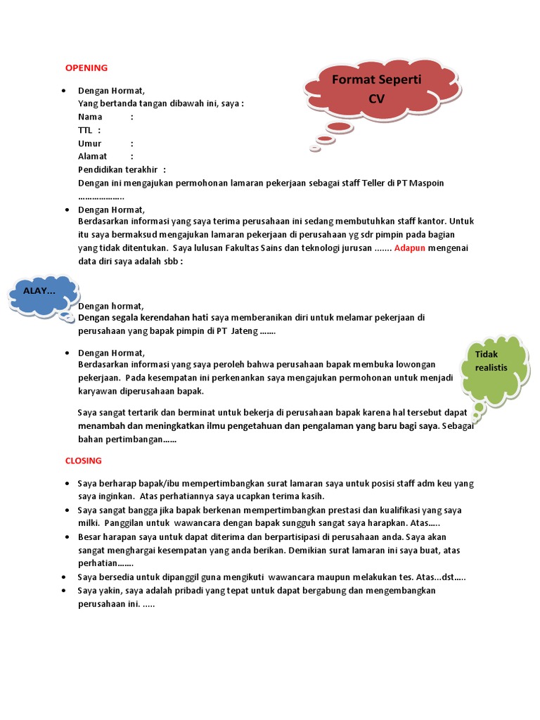 Contoh Membuat Surat Lamaran Kerja Pt Kai