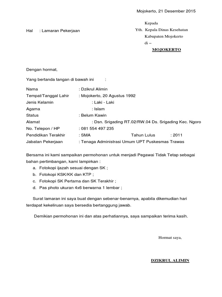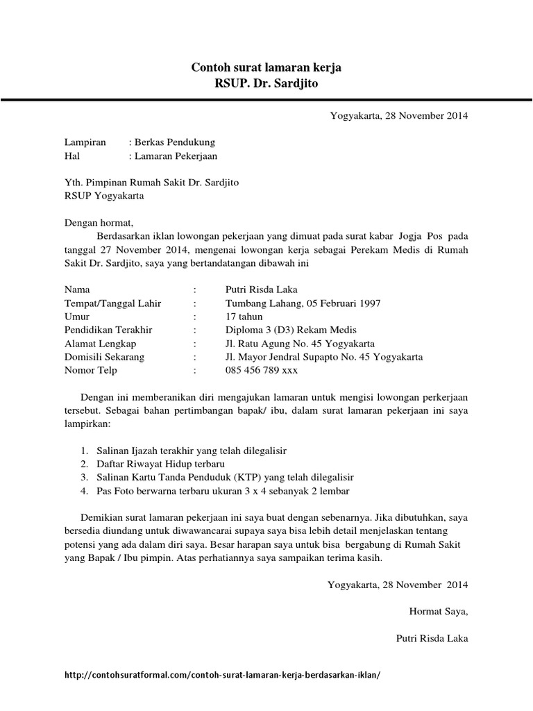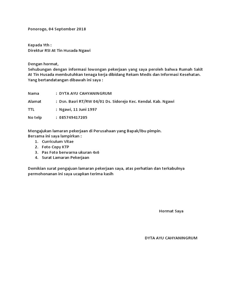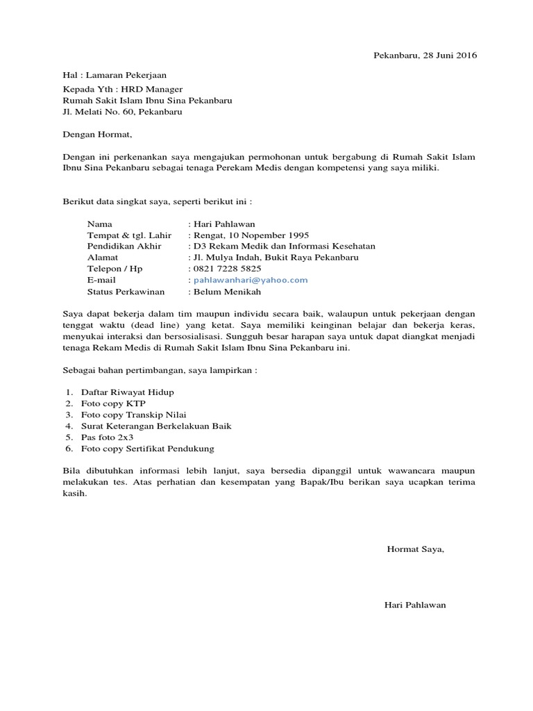 Contoh Surat Lamaran Kerja Rekam Medis - Kerkosa