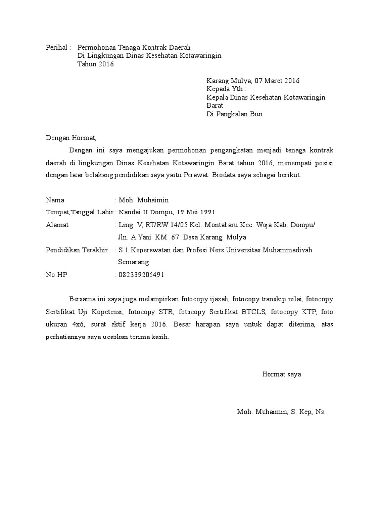 Contoh Surat Lamaran Tenaga Kontrak Daerah