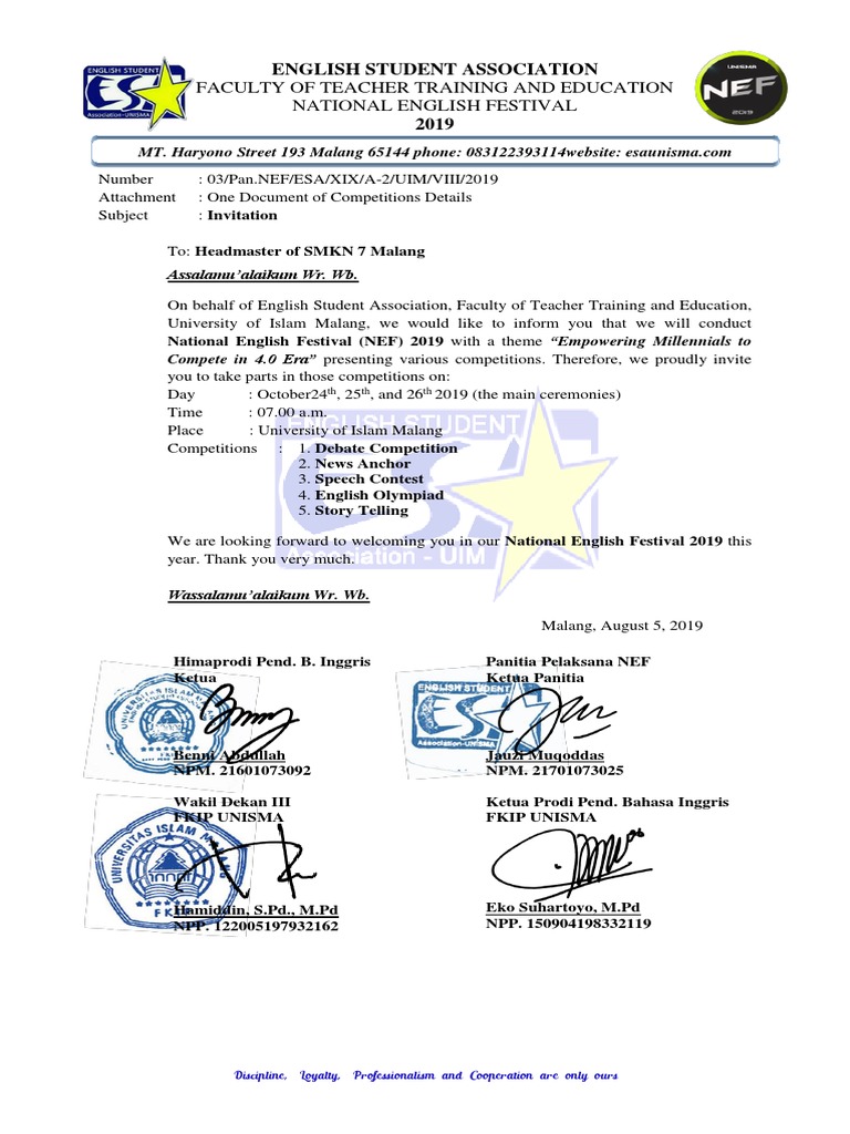 DOC) Contoh Surat Undangan dalam Bahasa Inggris | VG Putri ASekar - Academia.edu