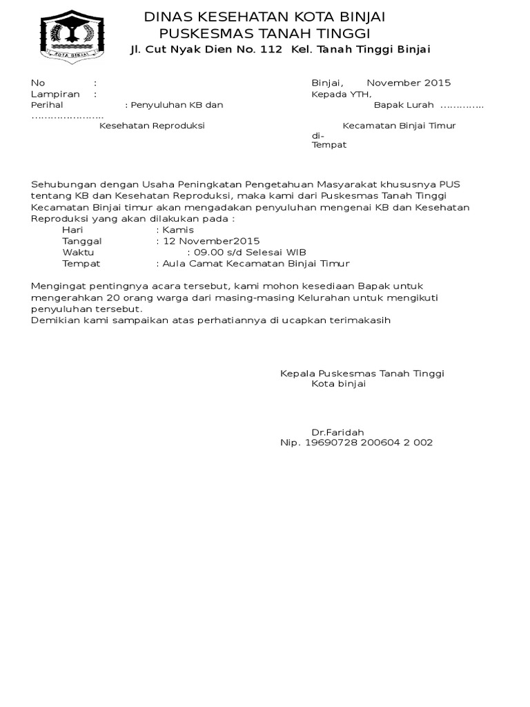 Contoh Surat Undangan Sosialisasi Kesehatan - Sample Surat Undangan