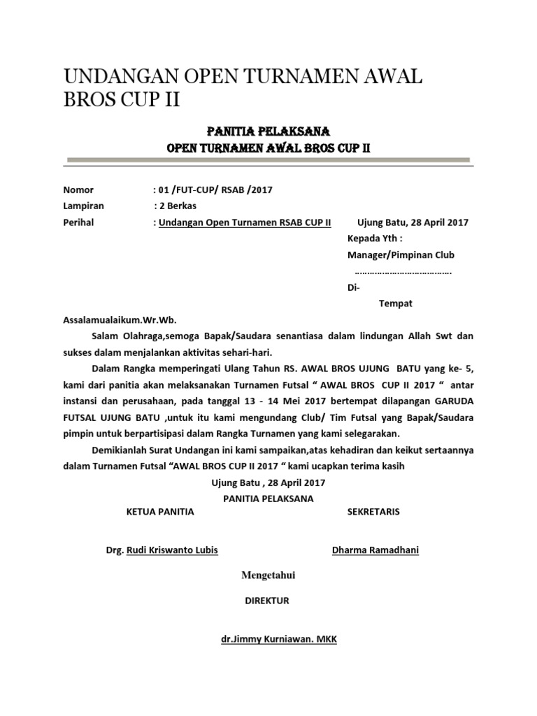 DOC) Contoh Surat Undangan Kompetisi Futsal 2 | rijalul muttaqin - Academia.edu