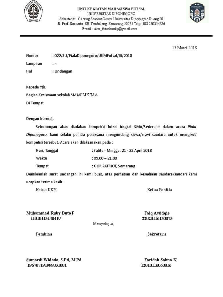 DOC) Contoh Surat Undangan Kompetisi Futsal 2 | rijalul muttaqin - Academia.edu