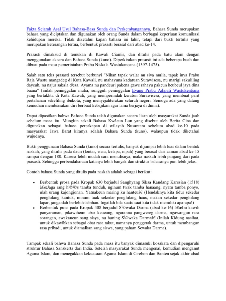 Fakta Sejarah Asal Usul Bahasa Sunda