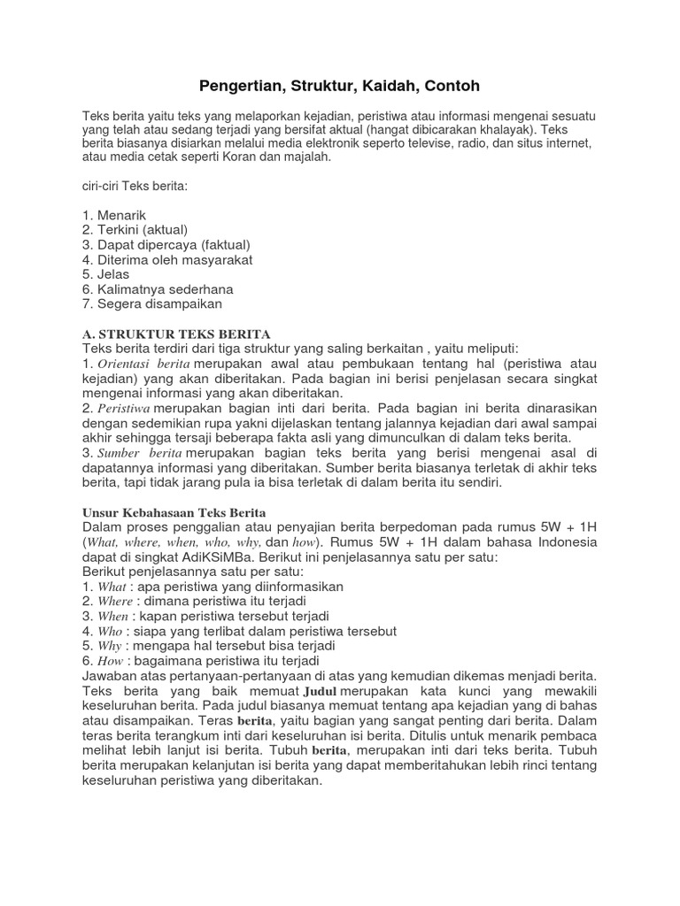 Pengertian, Struktur, Kaidah, Contoh: A. Struktur Teks Berita