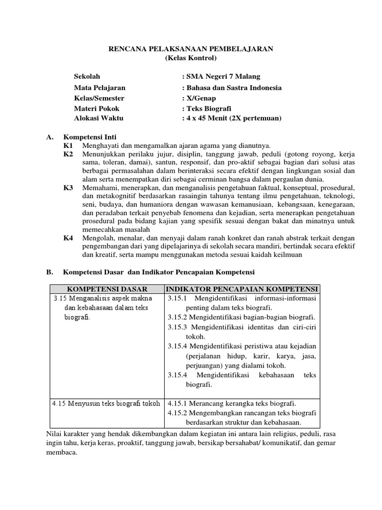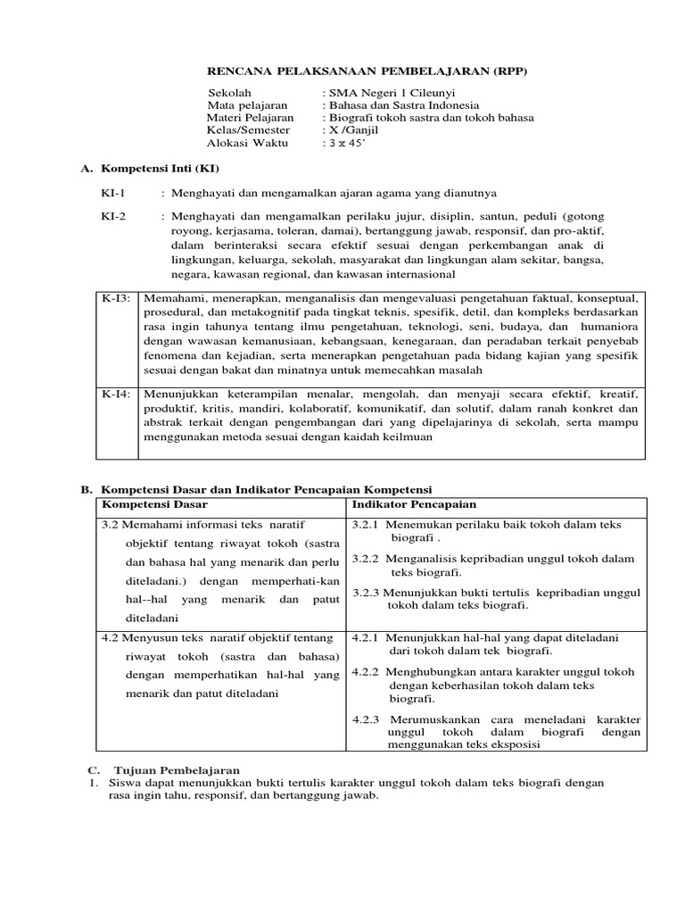 RPP Teks Biografi Kelas 10