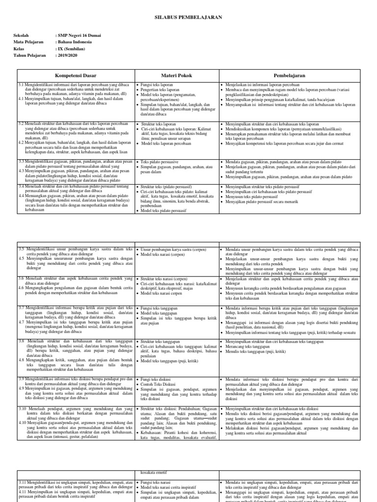 MATERI 9 K13.docx - TEKS KOMPETENSI DASAR DAN INDIKATOR SEMESTER SATU TEKS TEKS LAPORAN PERCOBAAN 3.1 4.1 3.2 4.2 TEKS PIDATO PERSUASIF 3.3 4.3 3.4 4.4 | Course Hero