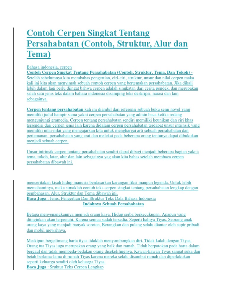 5 Contoh Teks Cerpen Singkat dan Strukturnya (Persahabatan, Pendidikan, dan Cinta) | “Hyunzyes”