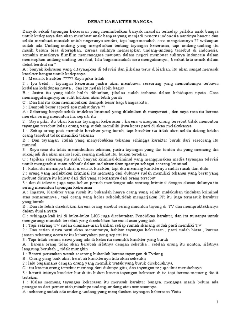 Contoh Teks Debat Berkaitan Pendidikan Karakter Di Sekolah