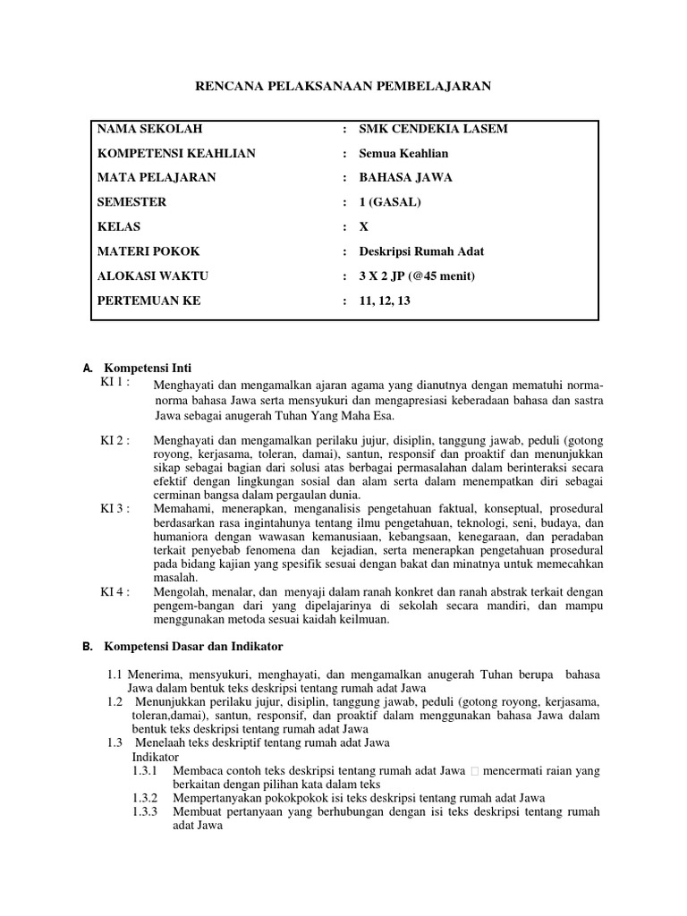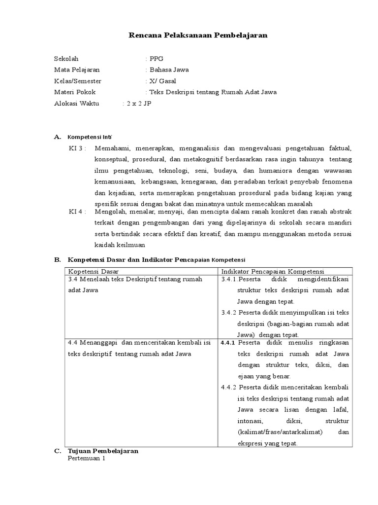 RPP TEKS DESKRIPSI RUMAH ADAT JAWA KLS X SMT 1-Presentasi