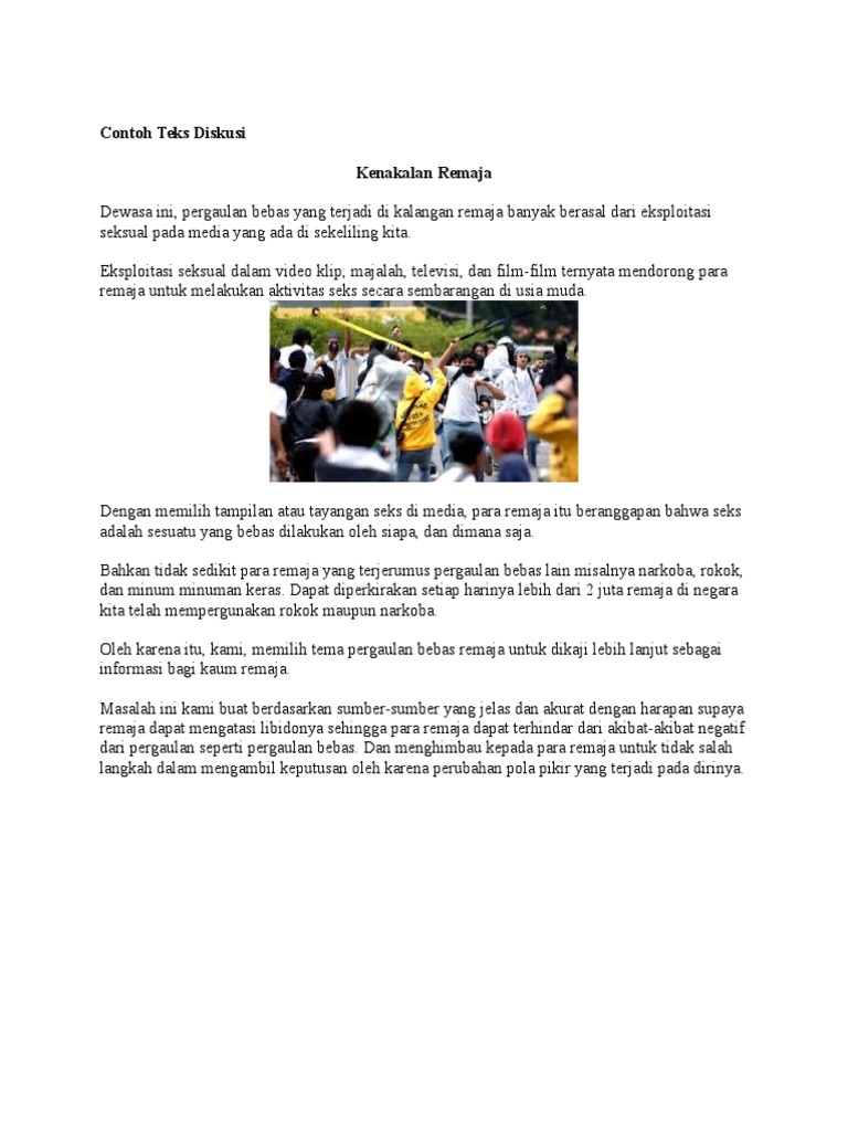 DOC) Contoh Teks Diskusi Tentang Kenakalan Remaja | Syafira Septika - Academia.edu