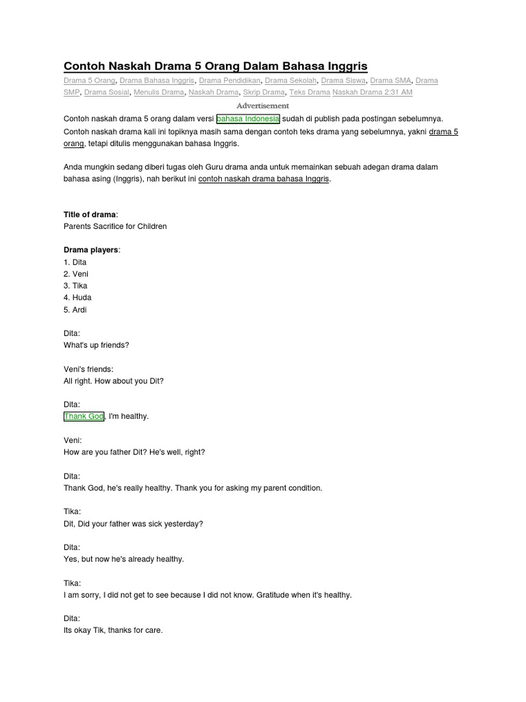 Contoh naskah drama remaja bahasa inggris by lika014 - issuu
